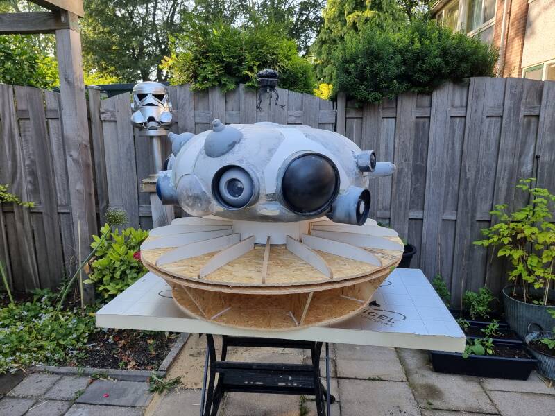 Mei 2023 gestart met het bouwen van een Lifesize Imperial Probe Doid uit de film The Empire Strikes Back! Altijd al een geweldig exemplaar gevonden om ooit na te bouwen, nu de DSD af is, heb ik daar mooi de tijd voor! Via internet heb ik oude foto s opgezocht om e.e.a. terug te schalen. Daarnaast heb ik nog een boek gekocht met extra originele foto's! Alles wat ik maak word weer met de hand gemaakt en zonder het gebruik van 3D printer! Juist het bedenken, hoe ik het kan maken en het werken met mijn handen geeft die extra voldoening! Daarnaast blijf ik ook lekker in beweging i.p.v. op een knop te drukken en te wachten tot er een onderdeel is geprint!